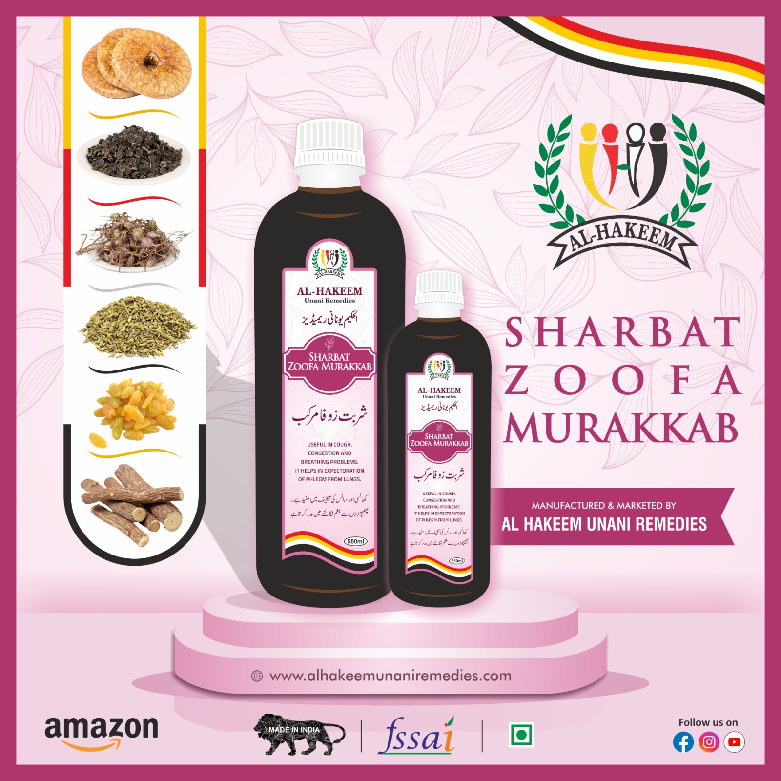 Sharbat Zoofa Murakkab helps regulate the respiratory tract. It is a bronchodilator with mucolytic expectorant action. It helps in soothing sore throats and symptoms related to asthma and cough